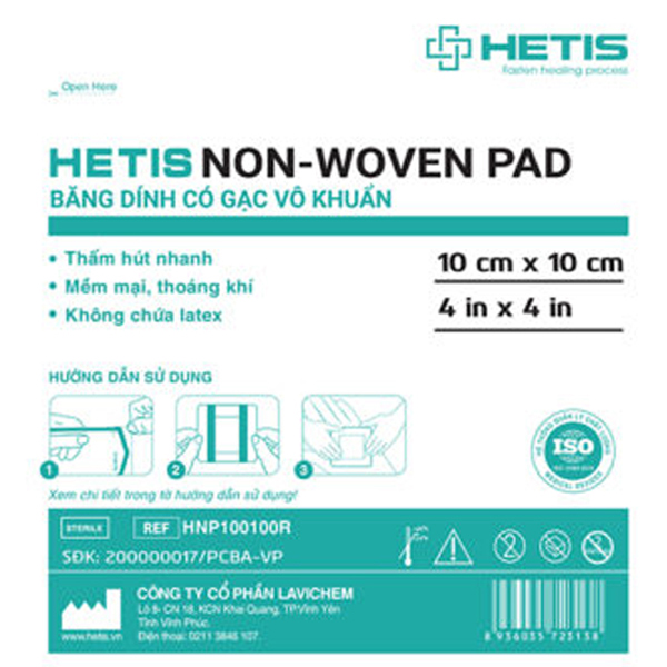 Hetis Non-Woven Pad là băng dính có gạc vô khuẩn, dùng một lần, có 2 phần