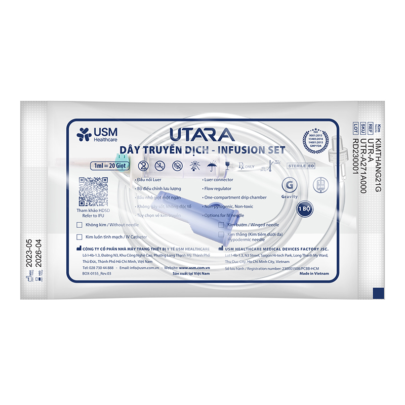 UTARA là dây truyền dịch thế hệ mới, với vật liệu dây PVC trong suốt và bầu nhỏ giọt cho phép quan sát, điều chỉnh dòng chảy một cách dễ dàng.